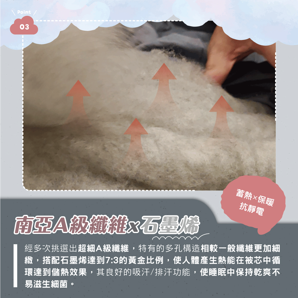 以蓄熱石墨烯+銀離子抗菌科技打造☁️
