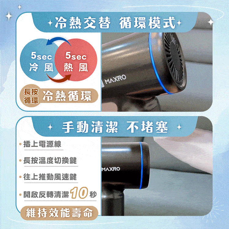 【MAXRO】雙電壓摺疊高速吹風機(晨曦白) MX-HD1001