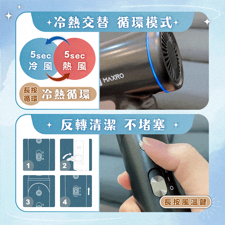 【MAXRO】雙電壓摺疊高速吹風機(晨曦白) MX-HD1001