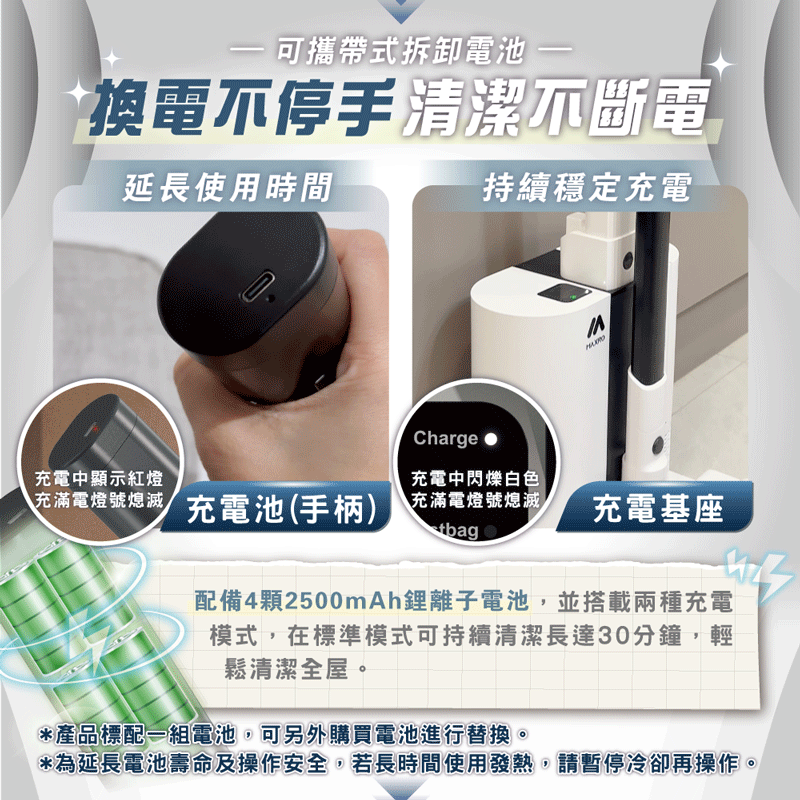 🛒內容物包含 : 自動集塵站*1+吸塵器主機*1+拆卸式鋰電池*1+電動防纏繞地刷*1+二合一毛扁刷*1+集塵袋*1+吸塵器/集塵站濾網各*1+清潔刀刷*1 ✨獨家附贈:摺疊彎管*1+一年份耗材組(吸塵器HEPA濾網*4+集塵站HEPA濾網*1+集塵袋*3) - ✅ 可自動/手動,開啟集塵功能 ✅ 20Kpa三段式,強力吸塵 ✅ 830g極輕量設計 ✅ 獨家【綠光顯塵】技術 ✅ 採用BLDC高效無刷馬達 ✅ 防頭髮纏繞皮條滾刷設計